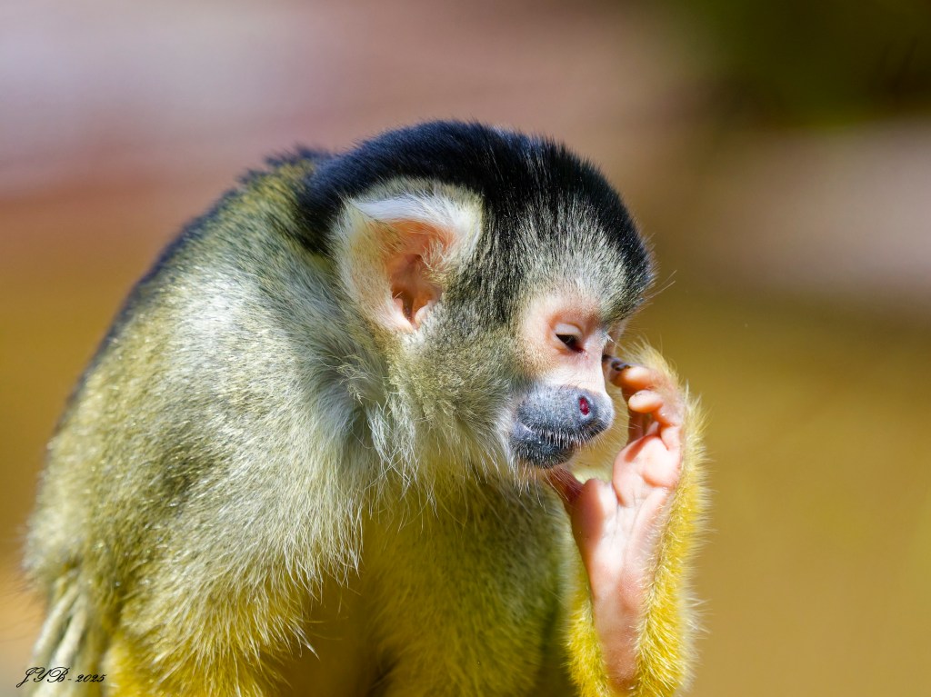 Bolivian squirrel monkey – Saimiri boliviensis – is also called ‘Black-capped squirrel monkey’ or ‘black-headed squirrel monkey’.