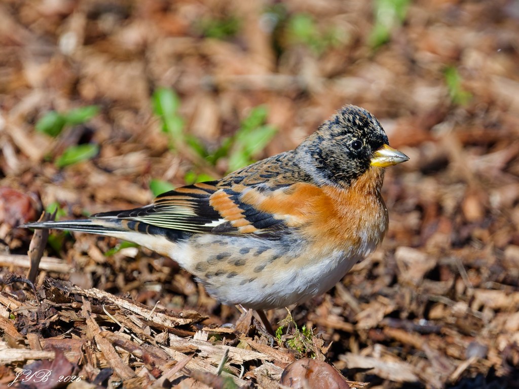 Le pinson du Nord – Fringilla montifringilla – est originaire de la Scandinavie jusqu’à l’Est de la Russie, là où poussent les forêts boréales.