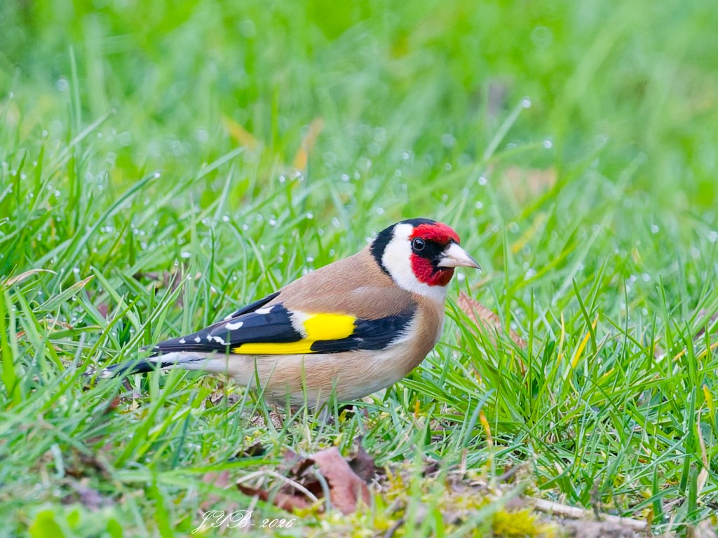 Ce chardonneret élégant – Carduelis carduelis – vient chercher un peu de nourriture dans le jardin.