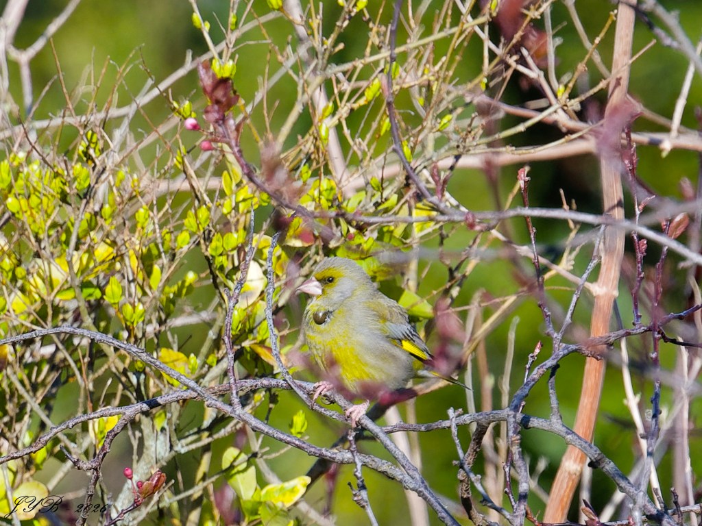 The European greenfinch – Chloris chloris – is a fairly common garden bird during winter, and it is not uncommon for one or two pairs to nest there.