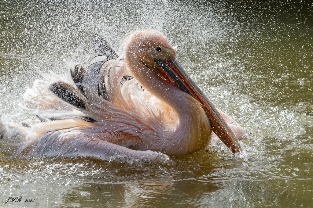 QUAND LE PÉLICAN BLANC SE BAIGNE – GREAT WHITE PELICAN