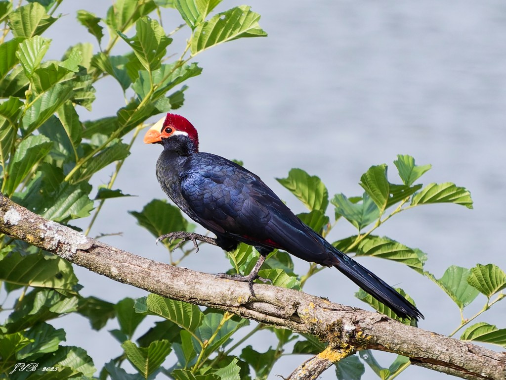 The purple turaco – Tauraco violaceus – is native to Africa.